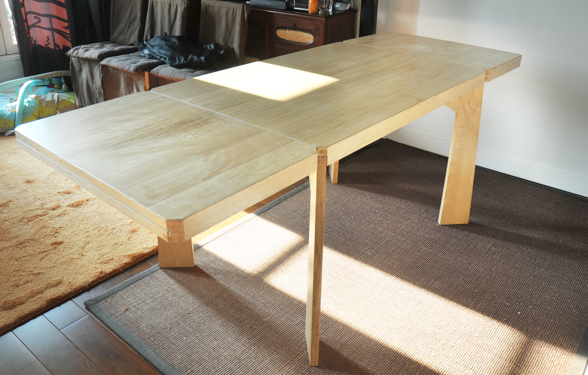 table 3Table en chêne massif. Assemblage traditionnel, chevilles en bois, tenons et mortaise. Rallonge à l’italienne.ImageImage