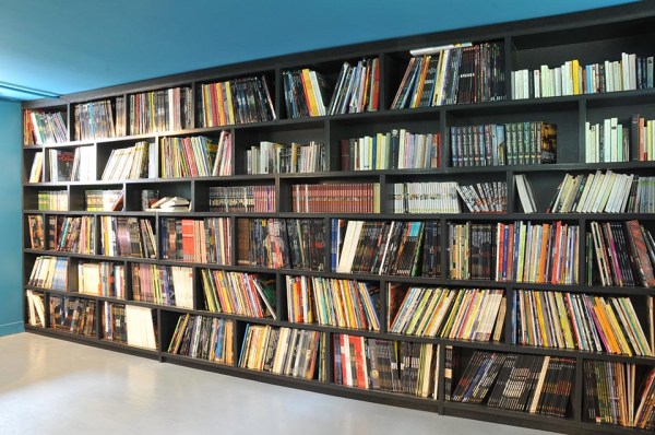 Bibliothèque en médium vernis teinté noir de 30 mm. D.A. C.Derouen