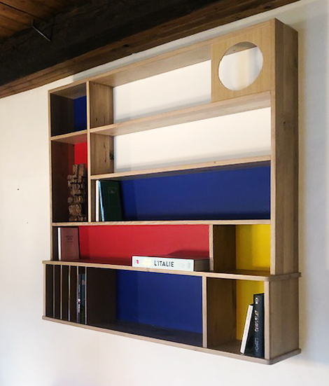 Réalisation de deux bibliothèques inspirés des meubles de Charlotte Perriand et revisités. Fabrication en chêne massif, cp chêne et médium peint pour l’une et CP bouleau et médium peint pour…