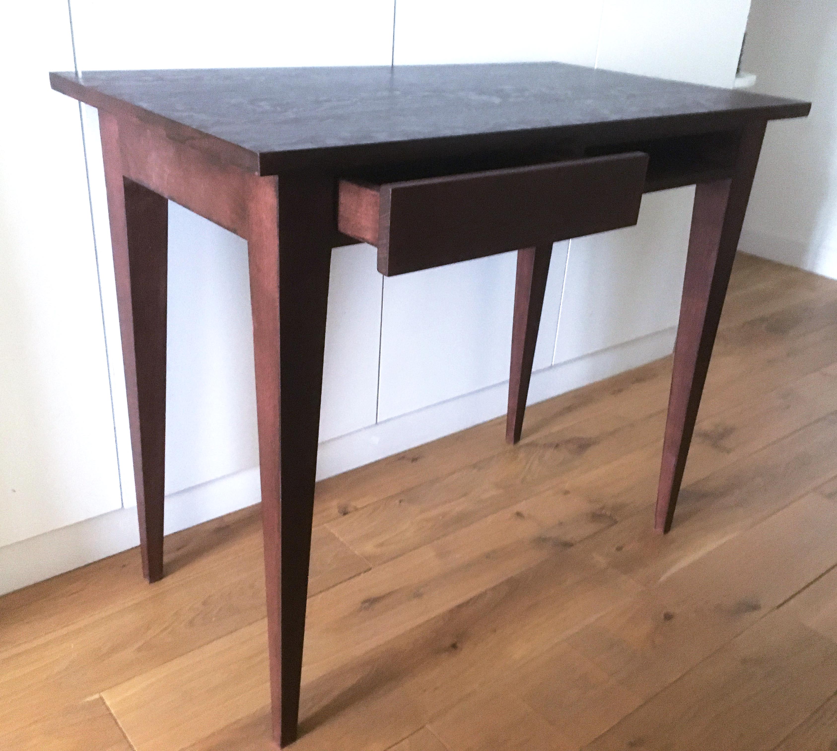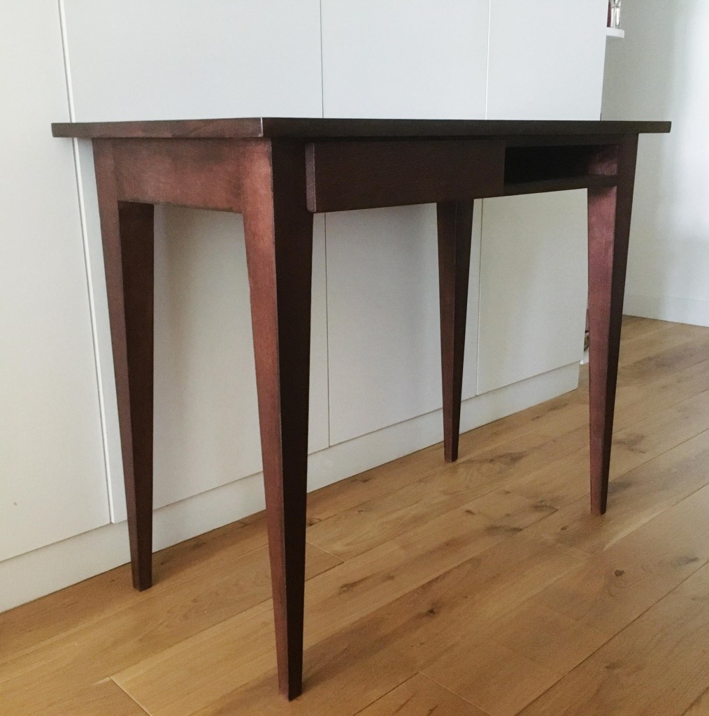 Petit bureau avec un tiroir. Fabrication en chêne teinté.