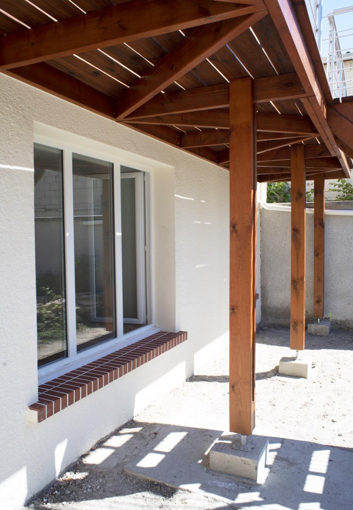 Construction d’une terrasse sur pilotis en Douglas teinté.