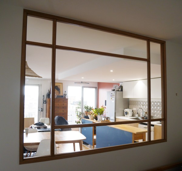 Fabrication d’une verrière sur mesure en chêne. Les montants on été usinés en croix pour alléger visuellement la structure. Le verre est un verre traité anti-bruit. Cette verrière sert de…