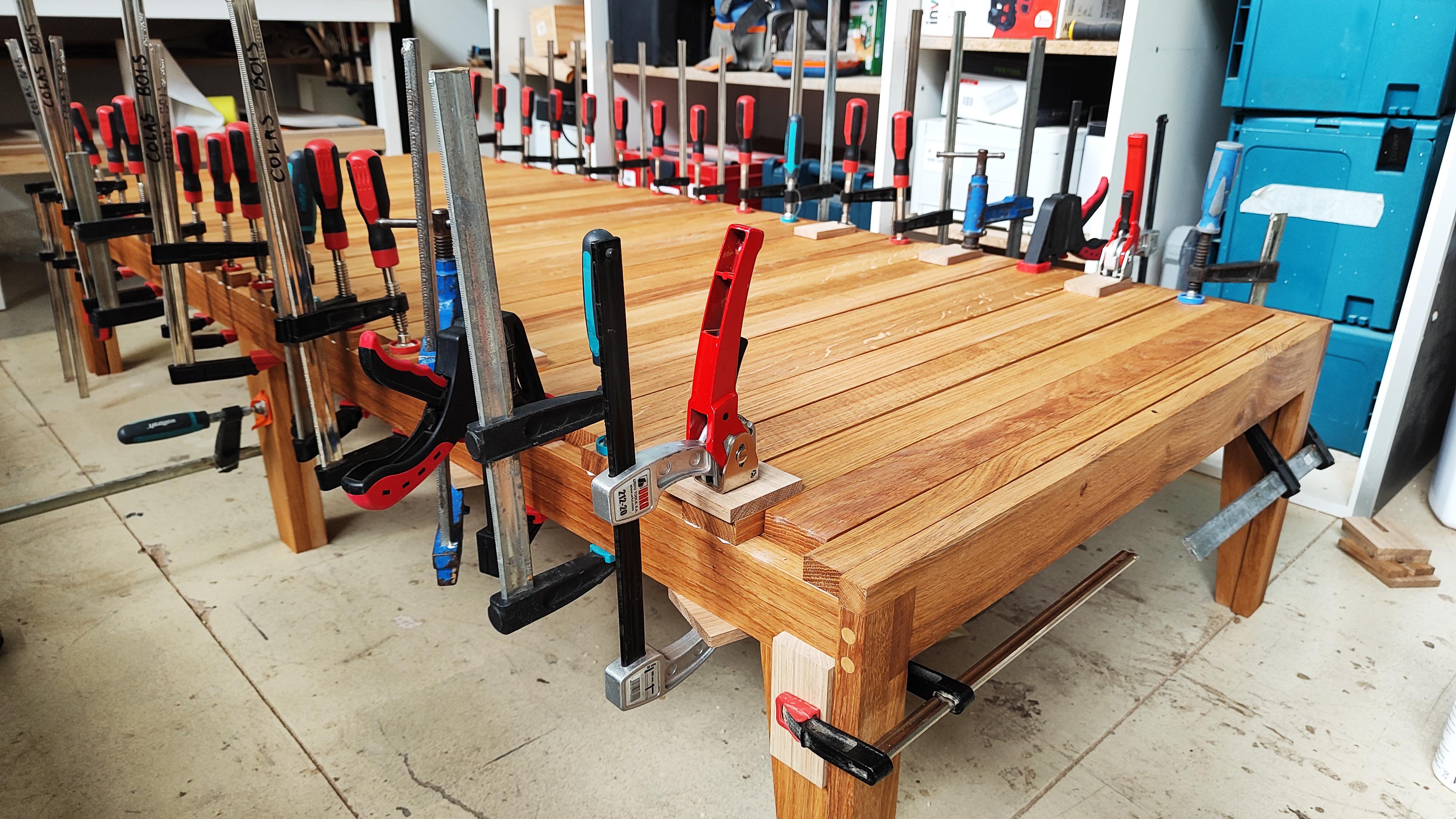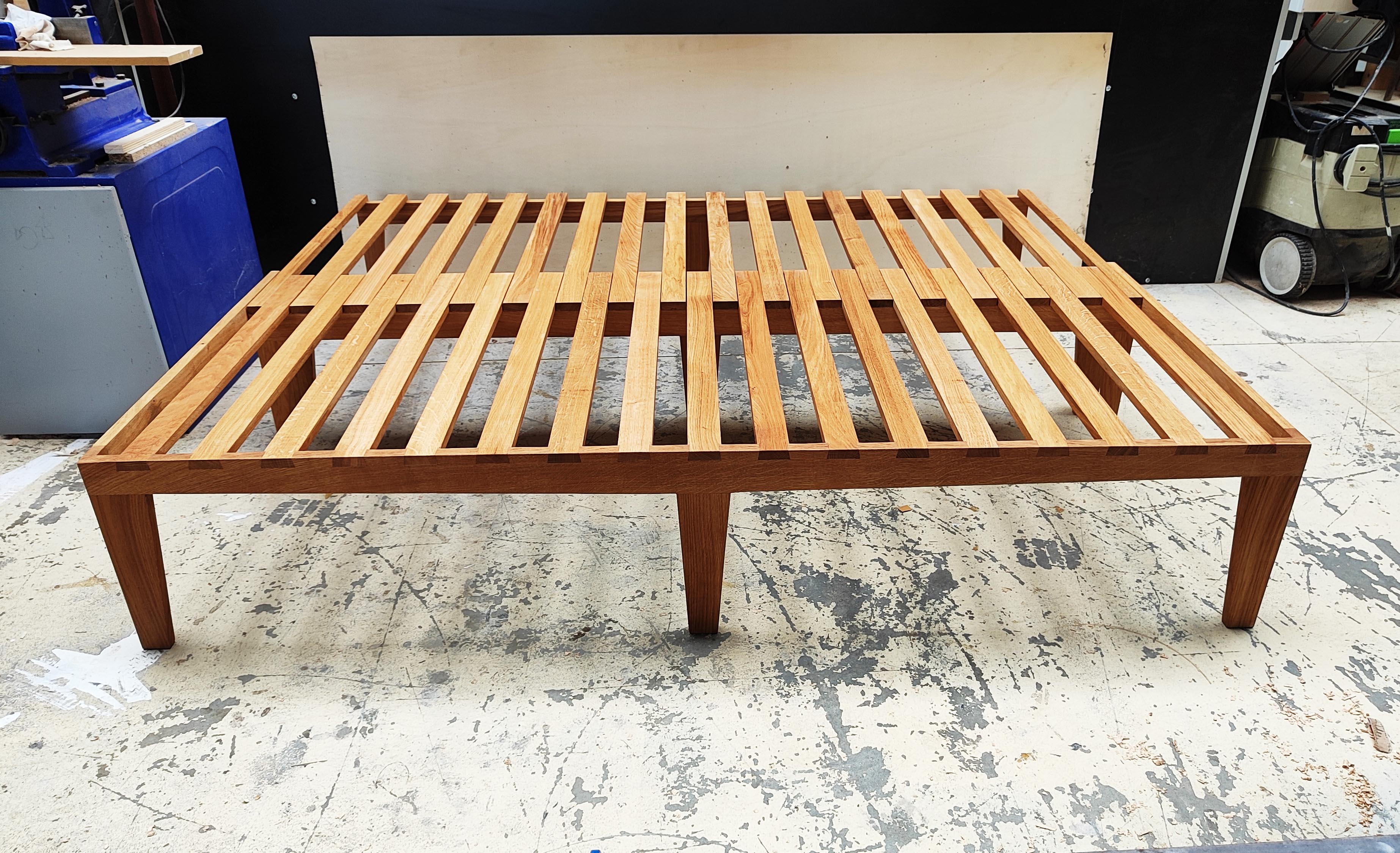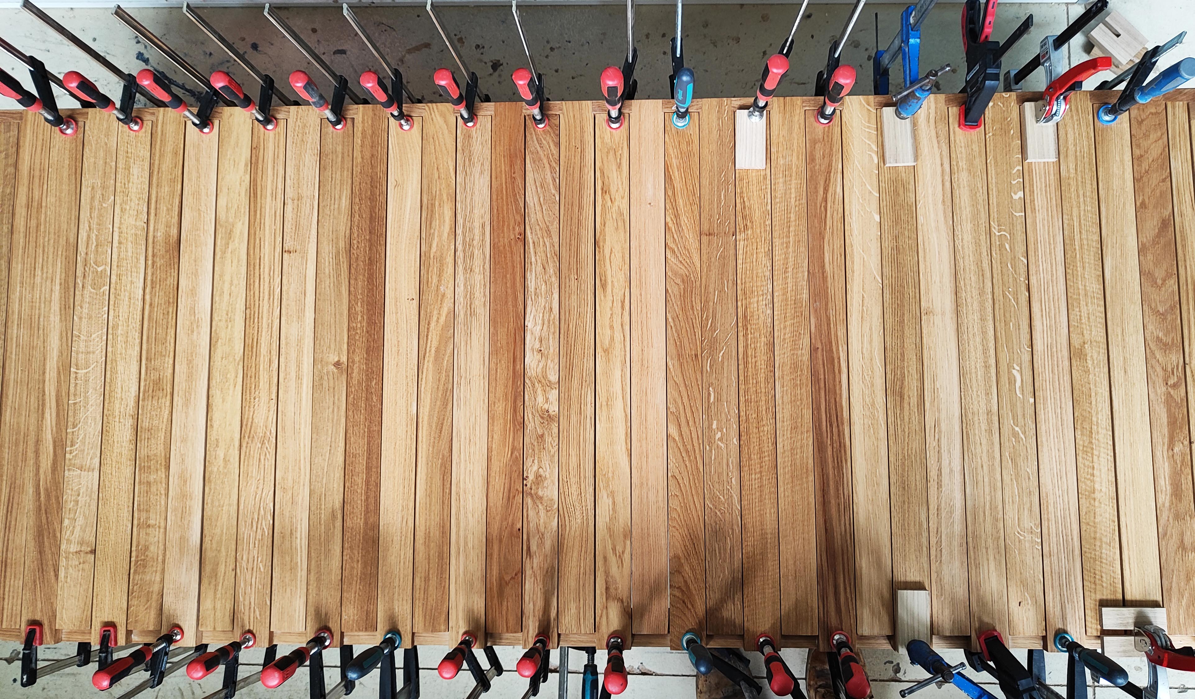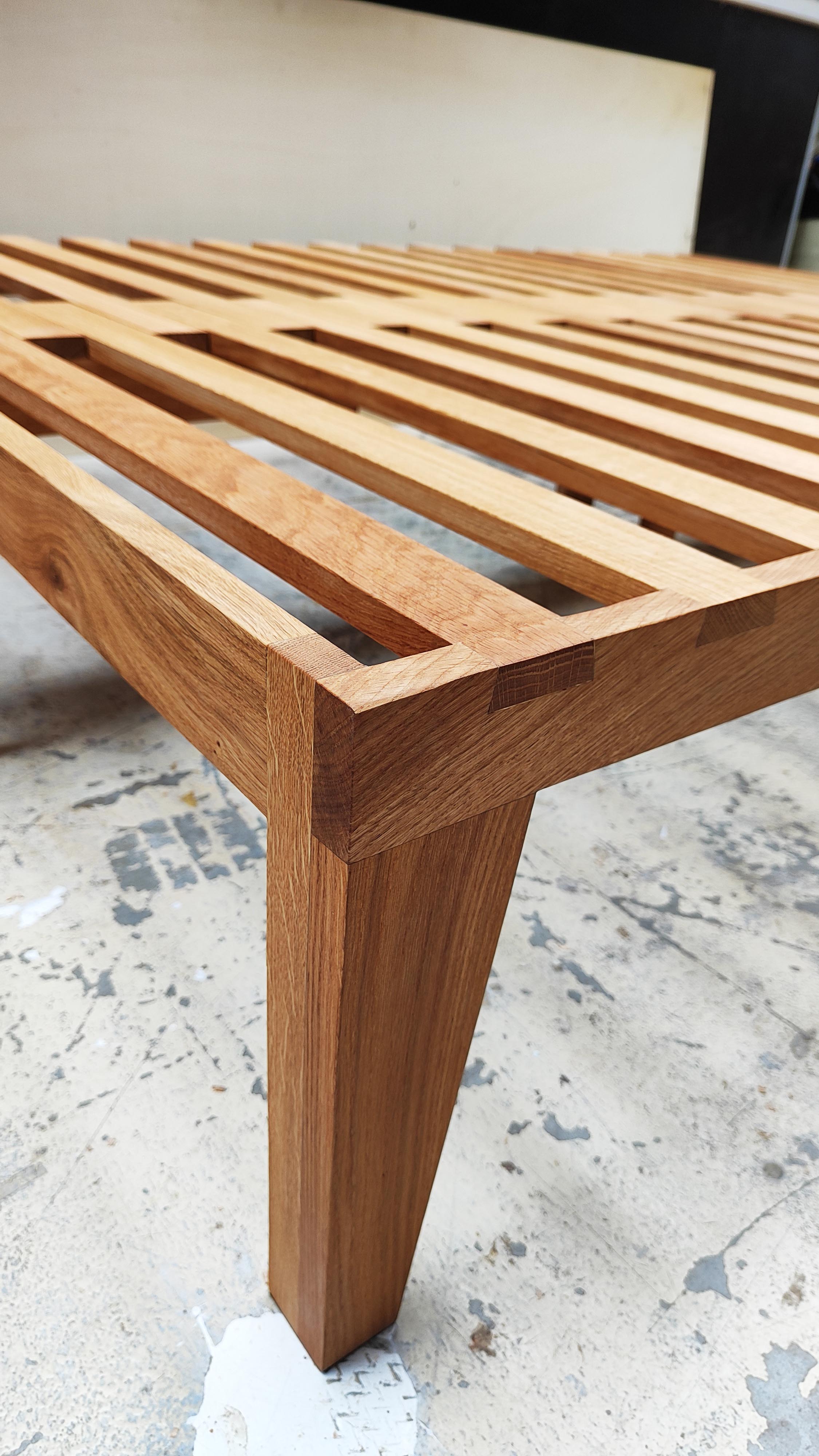 Fabrication en chêne massif , assemblage pour les lattes à queue d’aronde.