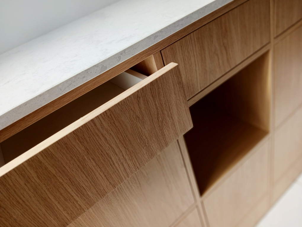 Le plan de travail est en quartz.